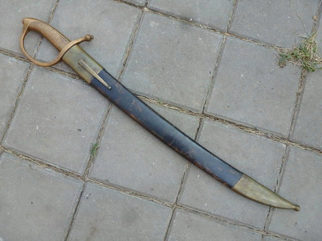 Солдатский тесак (он же - полусабля) этого типа имел клинок длиной всего около 69 см. Носился он исключительно солдатами линейной пехоты и пешей артиллерии, вот таким образом: