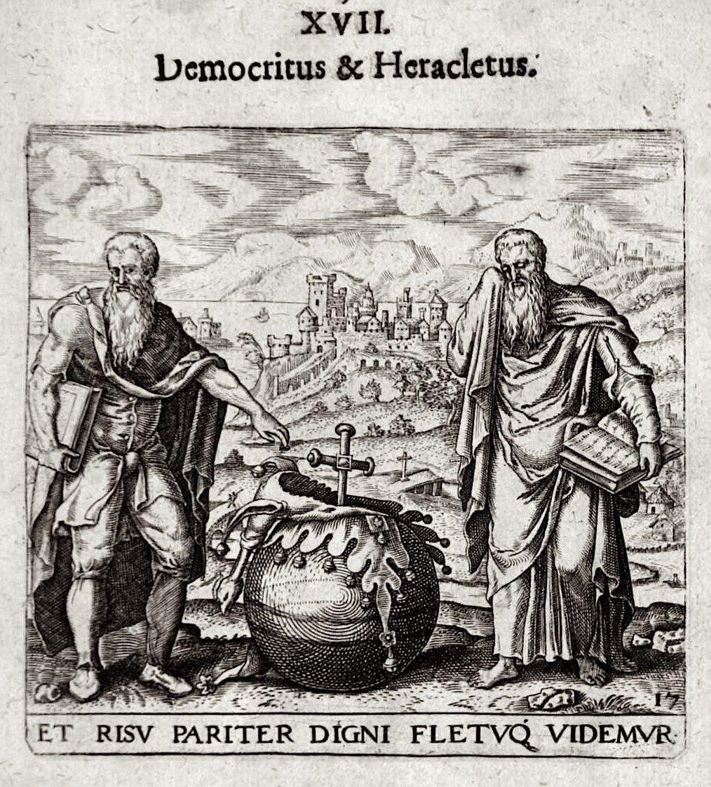 Так вышло, что античные философы регулярно получали прозвища, которые на сотни лет прикреплялись к ним, если им удавалось что-то существенное ухватить. Например, великий Платон - философ по имени Аристокл, известный все скорее своим прозвищем "Широкий". С древности людей занимала и случайно возникшая пара - "Плачущий" и "Смеющийся" философы. Гераклит и Демокрит.