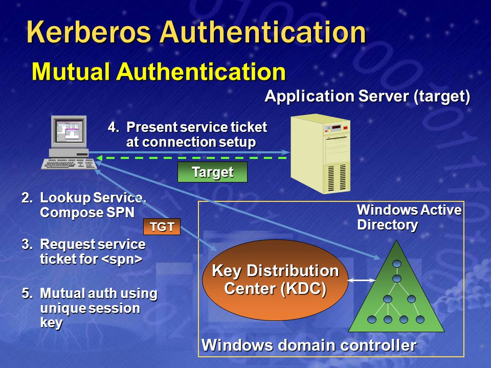 - Второе, более существенное изменение базового протокола заключается в ведении TGT (Ticket Granting Ticket — билет для получения билета) концепции, позволяющей пользователям аутентифицироваться на несколько сервисов используя свои верительные данные только один раз.