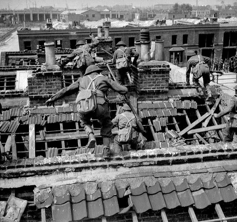 Британские солдаты осваивают перемещение по крышам домов для подготовки к городским боям. Лондон.