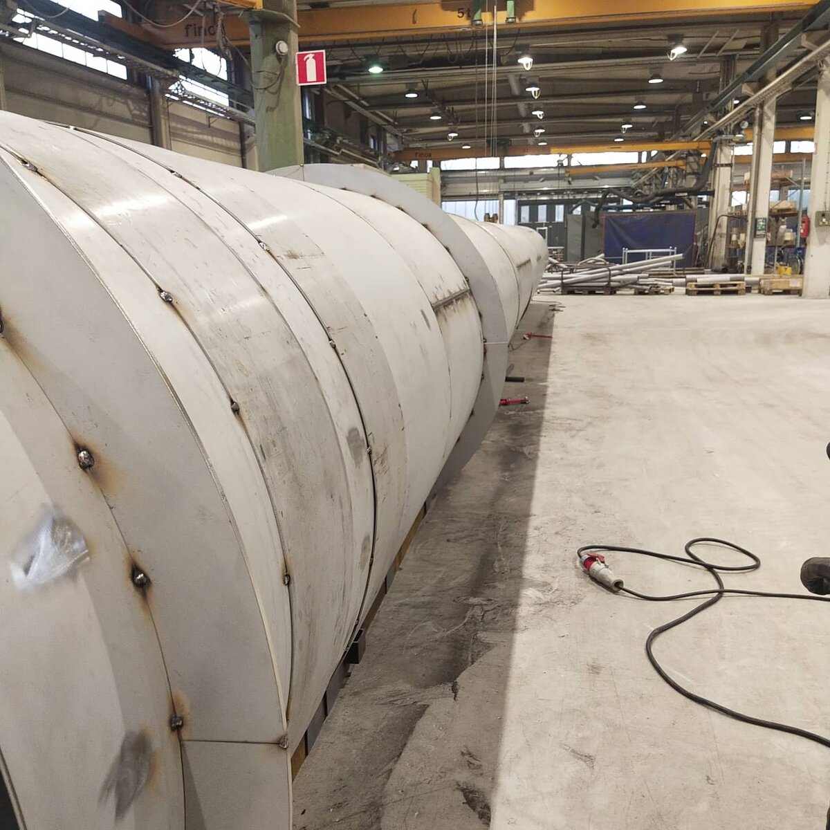 На данный завод нас взяли под определенную работу. Работа заключалась в сварке обечаек и в дальнейшем сборка сварка воздуховода для завода в Эспо. Сварка полуавтоматом , порошковой проволокой нержавеющей стали 316. Работа интересная и заранее просчитанная по времени сварки.