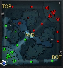 Игроки появляются в точке возрождения персонажей, на так называемом «фонтане». «Фонтаны» команд находятся в противоположных частях карты. В этом месте игроки могут воспользоваться основной лавкой. В основной лавке можно купить предметы и расходники. В начале игры разумно приобрести расходники — они помогут комфортно чувствовать себя на линии. Начать передвижение по карте стоит только после того, как вы с командой обсудите расстановку персонажей по линиям.
