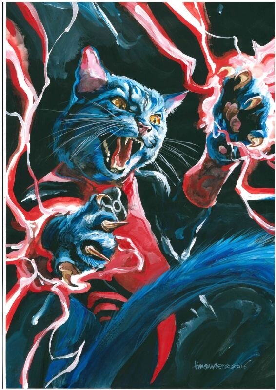 Декстер мог запачкать место преступления, один из полицейских пнул его и сказал убираться (по-видимому, не подозревая, что Декстер жил в квартире). Он остался без крова, неизвестно сколько мотаясь по помойкам и живя в картонной коробке, пока однажды двое панков не схватили его и не сунули в мешок. Для забавы они решили сбросить его с моста и поспорить, умрёт ли кот от удара о воду. В этот момент Красное Кольцо Силы искало нового носителя; падая с моста, он услышал телепатический голос кольца: «Декс-Старр с Земли. В твоём сердце великая ярость. Твоё место в Корпусе Красных Фонарей.» Убив своих обидчиков, Декс-Старр лежал на груде черепов, рядом с автоматом газировки у грязного входа в метро. И по сей день, Декс-Старр, приняв новое имя, помнит доброту и слова своей хозяйки. В конце он поклялся найти и убить того, кто причинил ей боль.