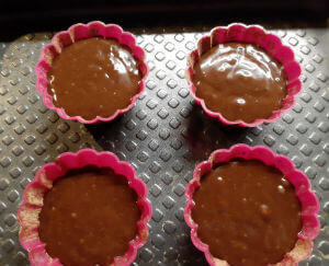 В подготовленные формочки раскладываем шоколадно-мучную смесь.