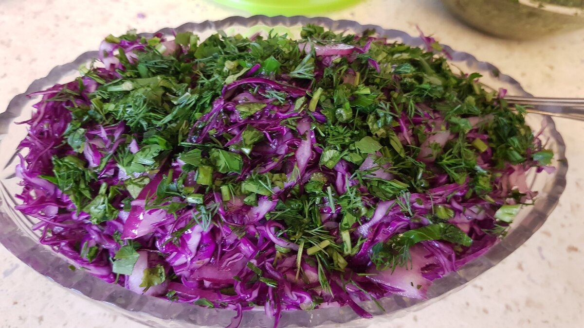 9. Добавить зелень к капусте.