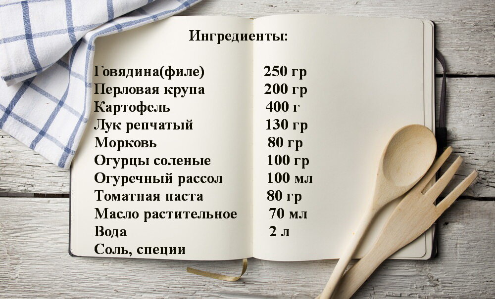 Для моего рассольника нам понадобятся следующие ингредиенты: