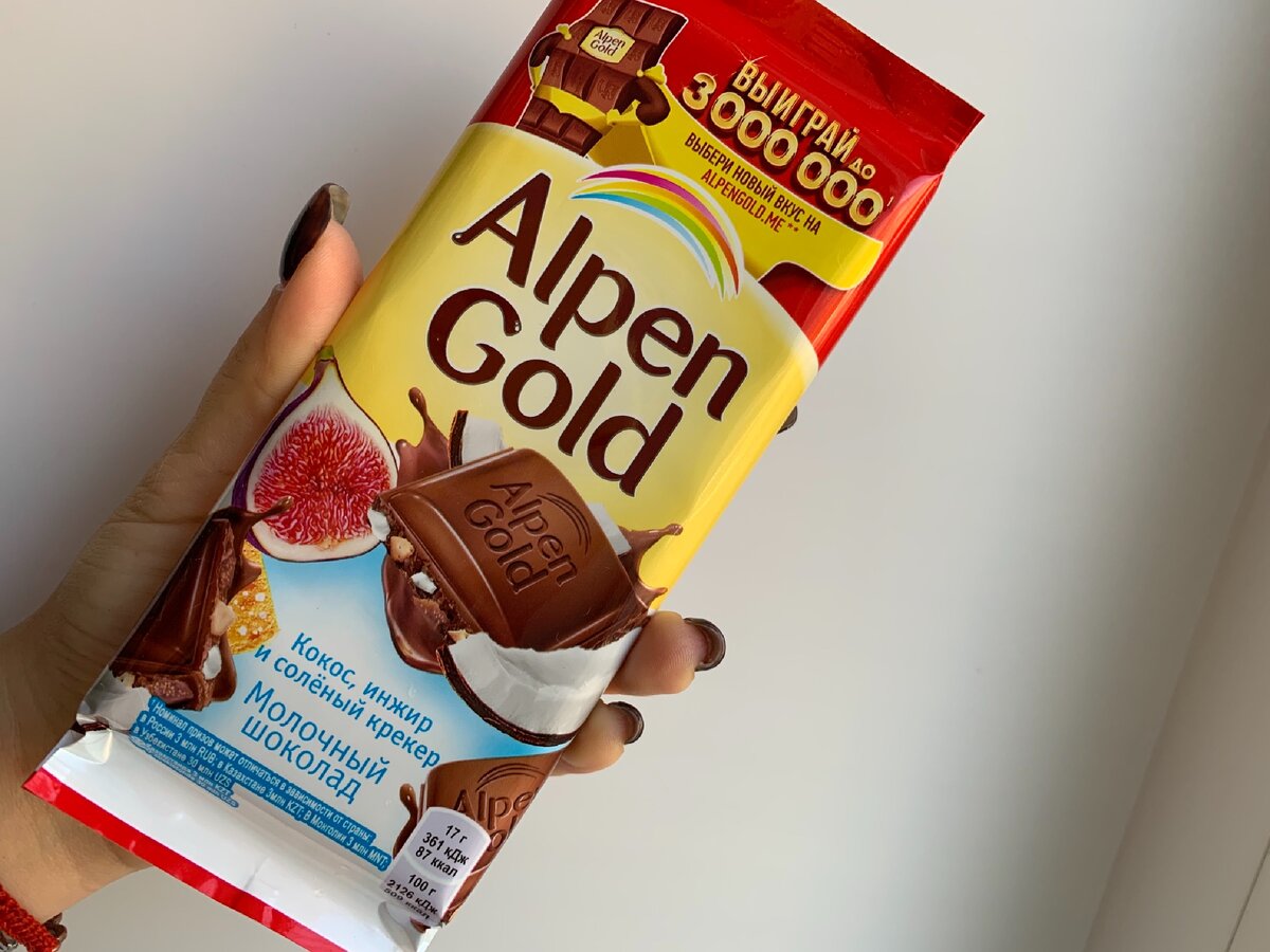 Ничто инжирное не пройдёт мимо моего взгляда😂 Обзор на новый вкус Alpen Gold кокос, инжир и соленый крекер.