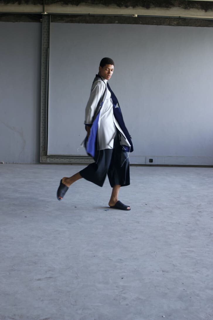 В 2018 году Томпсон самостоятельно и основал свой гендерно-нейтральный лейбл Lagos Space Program, черпая вдохновение из таких разнообразных источников, как афрофутуризм и японский дизайнер Йоджи Ямамото. Но на его творчество в первую очередь повлияли повествовательные традиции его корней йоруба. Струящиеся брюки и жилетки выполнены из асо-окэ и принтованного адира. Одобренный Мишель Обамой дизайнер Дуро Олову стремится к «культуре стиля» «Исторически сложилось так, что когда люди носили одежду, это действительно было похоже на повествование», - сказал Томпсон. Мотивы могут передавать информацию о том, где человек родился или о том, что он скорбит. Для Томпсона решение оставить вещи на местах «было очень практичным» с точки зрения контроля логистики, но также и способом обеспечить качество его коллекций.