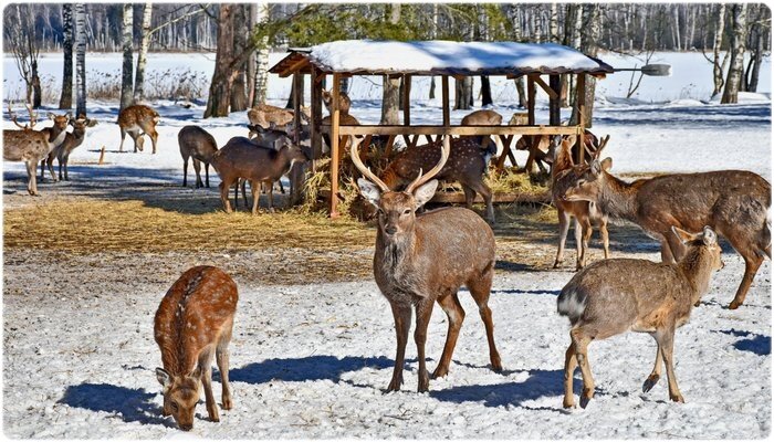 Оленей и косуль зимой подкармливают лесным и луговым сеном, зерном, желудями и веточным кормом.