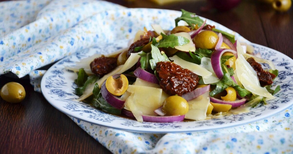 Итальянская кухня ассоциируется у нас с сытными и калорийными блюдами, такими, как паста, пицца или ризотто. Но итальянцы едят и легкие, вкусные салаты! К примеру, популярный салат с рукколой и вяленными помидорами! Это отличный вариант для ужина.