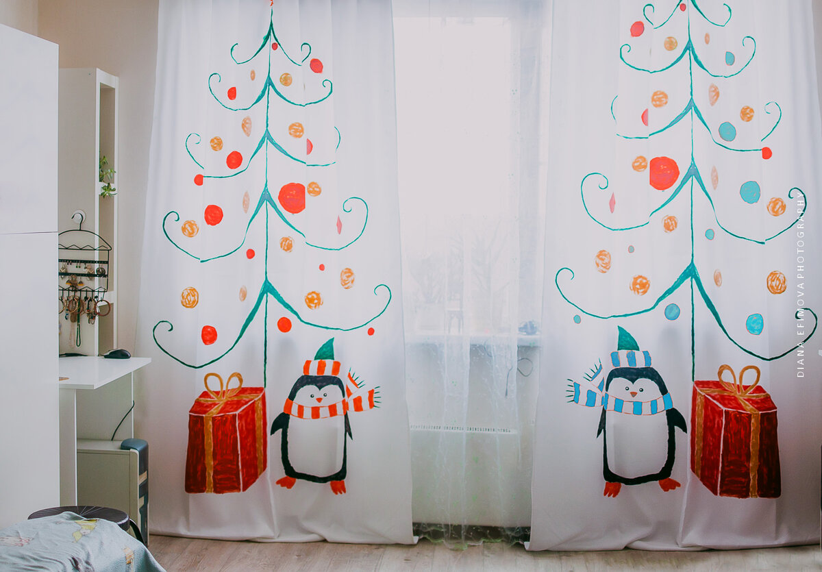 Помню много лет назад, мне пришла в голову идея иметь новогодние шторы. Такие чтоб радовали нас 2 месяца в году! Новый год для меня - особенный праздник 🎅и шторы, как и украшения, хотелось бы особенные. Но я не находила ничего для нас подходящего, ни по расцветке, ни по размеру, ни по стилю. И вот мы узнали, что шторы можно сделать самим со своим личным принтом