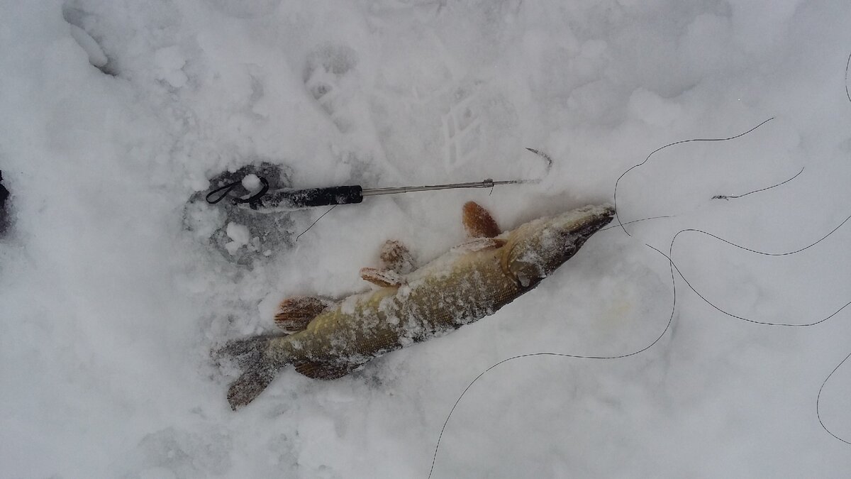 Четвёртое... Здесь я намеренно не называю ошибкой ЭТО действо... Имею в виду вываживание крупной щуки из лунки за леску и потом, дождавшись, когда она раскроет пасть, ухватить её за нижнюю челюсть специальным зацепом:
