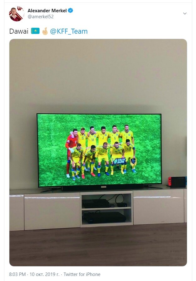 - В апреле этого года Меркель Александр поздравил казахстанских болельщиков с праздником футбола в нашей стране.