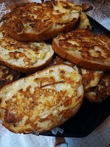Репчатый лук режем и ревем. Потом потрем немного сыра, сырой картошки, добавим два яйца и чуть муки для