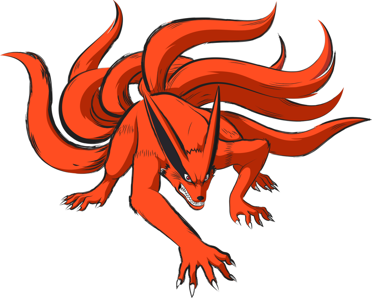 Курама - Лис с оранжевой шерстью и большими красными глазами. У девятихвостого большие лапы и длинные уши с чёрными пятнами. По телосложению Курама довольно худой с длинными большими хвостами. У Курамы чёрный нос и острые зубы.