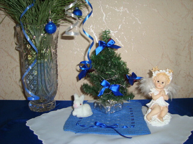 Люблю маленькие салфеточки! Ими можно украсить праздничный стол, поставив под фужер или какую-то вещицу служащую украшением стола.