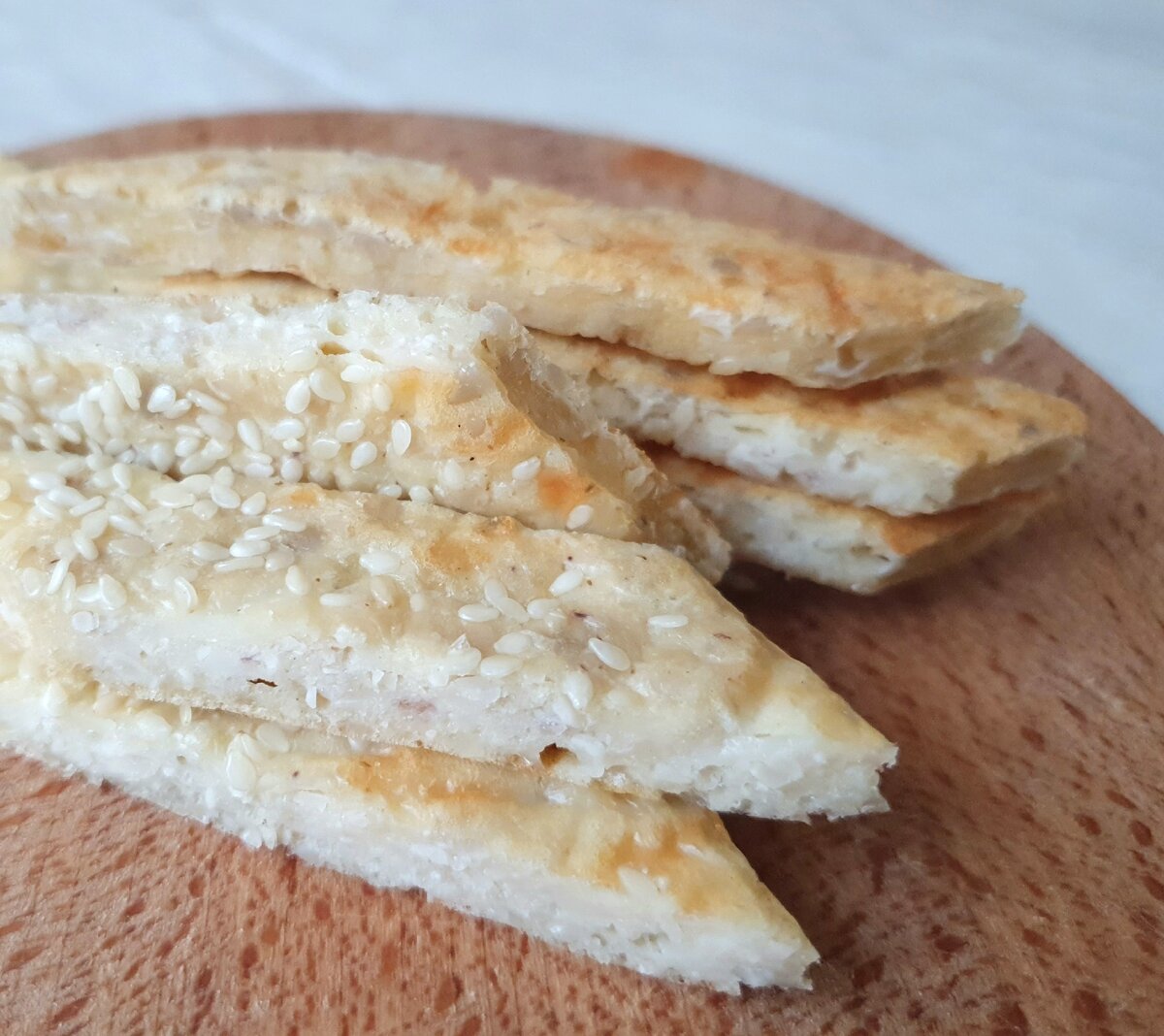 Выложить тесто однородным тонким слоем (~0,5 см) на пергамент, можно посыпать сверху кунжут.