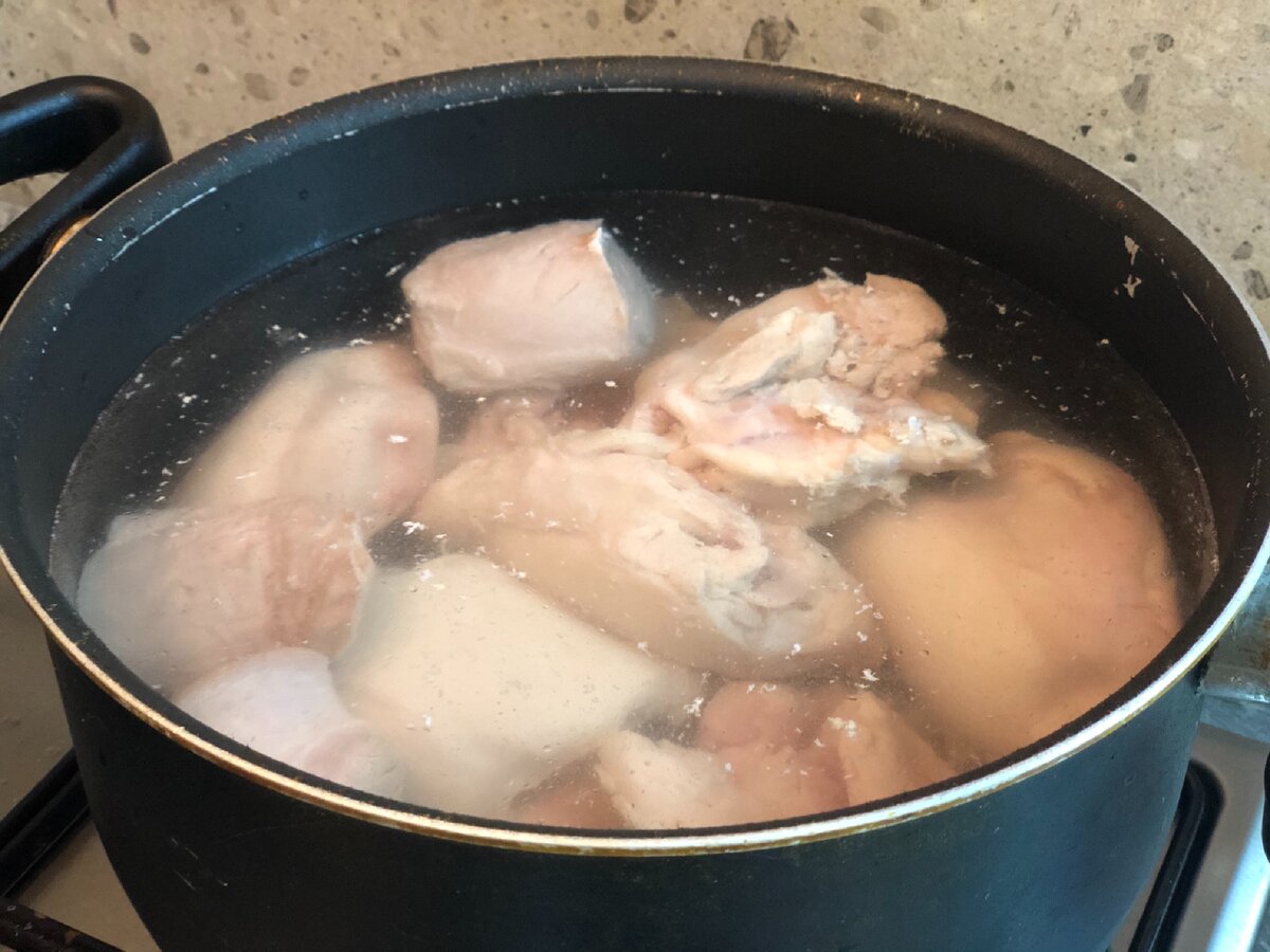 Начнем мы, конечно, с бульона. Зальём мясо водой и поставим на нагрев. Пену снимать не будем, будем готовить на втором бульоне. Как только закипела вода - снимаем кастрюлю, и выливаем содержимое в раковину. Тщательно промоем мясо и кастрюлю (без химии). И залив мясо чистой водой поставим на нагрев. Доведём до кипения, убавим нагрев на минимум. Тщательно снимем пену.