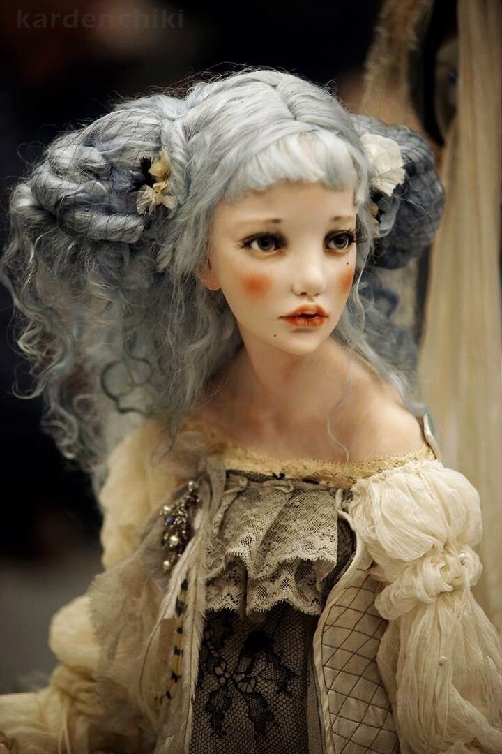 Ещё одна работа, отличающаяся от прошлых– темнокожая девочка. Кожа данной куклы, очевидно, имеет шоколадный оттенок, чего не встретишь в работах автора. Макияж облегчён отсутствием ярких губ, а румяна не так выделяется из-за оттенка кожи. Глаза большие с пышными ресницами, взгляд устремлён прямо, что создаёт впечатление готовности девочки открыться миру. Наряд выполнен в стиле эпохи Возрождения, но имеет некоторые отличия отражающиеся в наличии дополнительных аксессуаров.