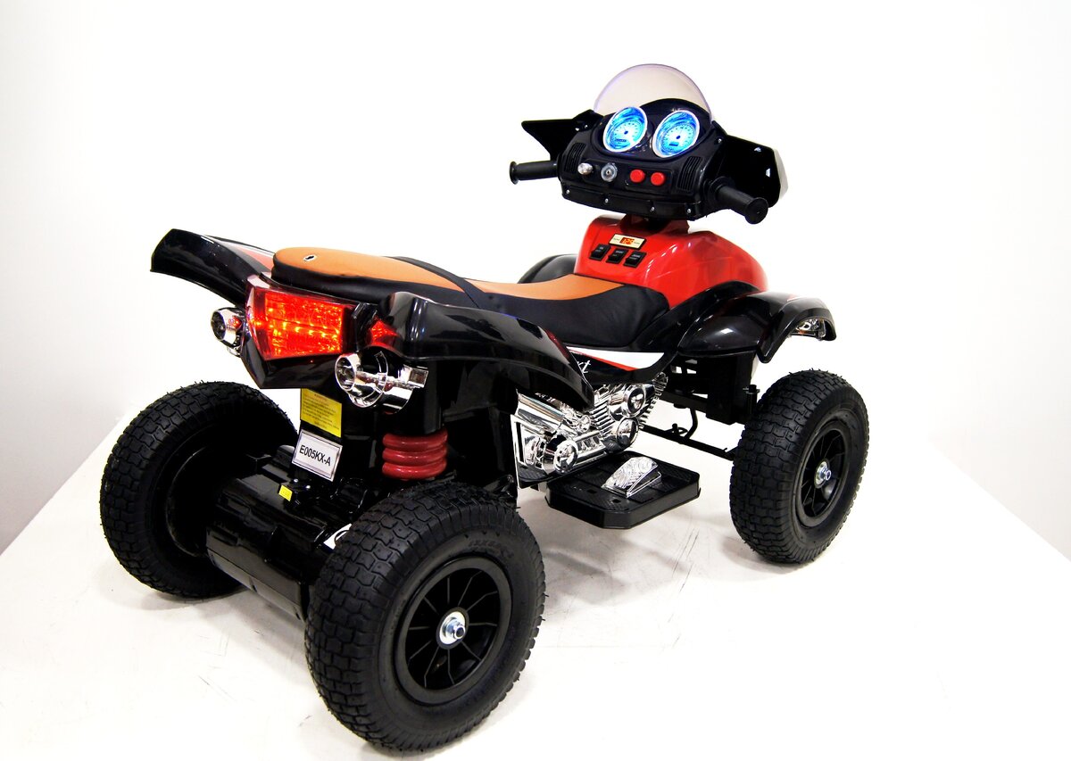 Управление находится на рукоятках машины, что делает управление легким и понятным для ребенка. Часто производитель устанавливает автоматическую трансмиссию и электрический стартер. Квадроцикл для детей имеет высокую маневренность и малый вес. Если колеса всё-таки застряли, его легко вытащить.