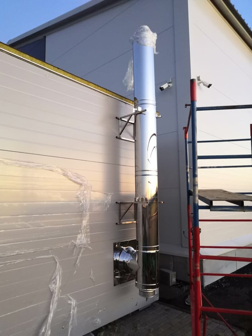 Новый смонтированный объект - дымовая труба для котла на дизельном топливе.