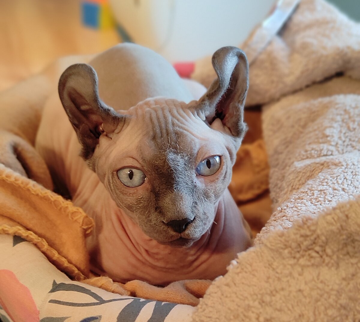 Для начала скажу, что есть разные "гибриды" сфинксов такие как эльф(сфинкс с загнутыми ушами) или бамбино(сфинкс с маленьким лапками) . Эти "гибриды" Почти не различаются по характеру от сфинксов.