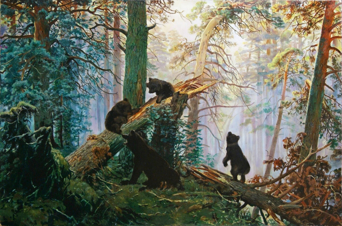 "Утро в сосновом лесу"-самая известная картина выдающегося русского пейзажиста Ивана Ивановича Шишкина. На своём полотне художник изобразил утро в глухой чаще посреди дремучего леса.