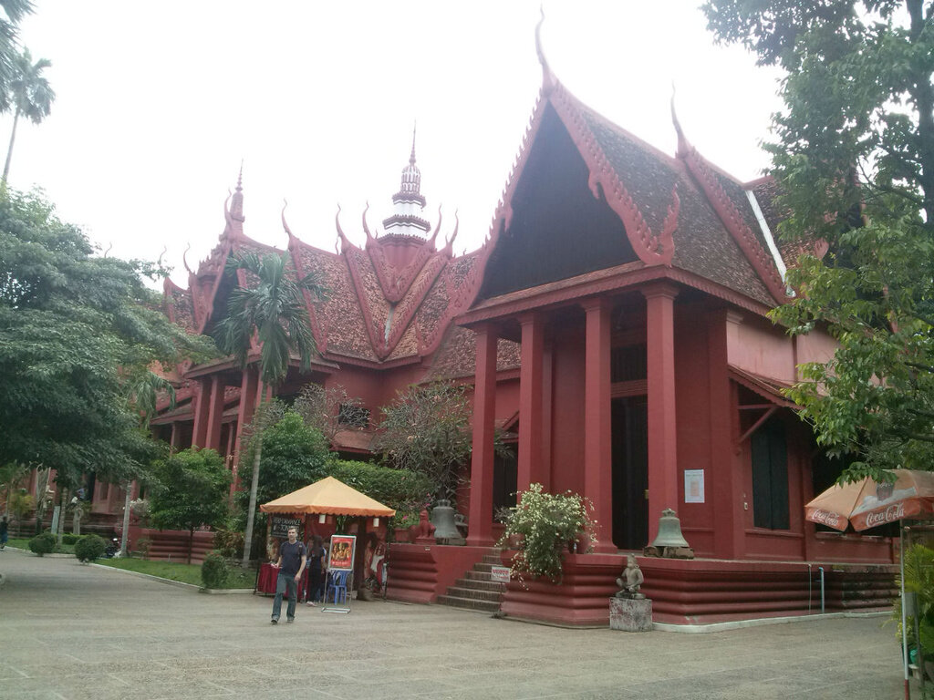 Во времена красных кхмеров в 1975 году начались кровавые побоища по всей стране. Город Пень. Тюрьма Toul Sleng. Впечатлительным не читать! А когда красные кхмеры прорвались в Пномпень, то началось мародерство. Во избежание этого и сохранения хотя бы части экспонатов из здания были вывезены самые ценные из них. Оставшиеся остались под присмотром сотрудников и незначительной охраны. Многие из этих людей пожертвовали ради музея своими жизнями. Само здание находилось в ужасном состоянии, крыша прогнила и стала протекать, а внутри поселились целые колонии летучих мышей.