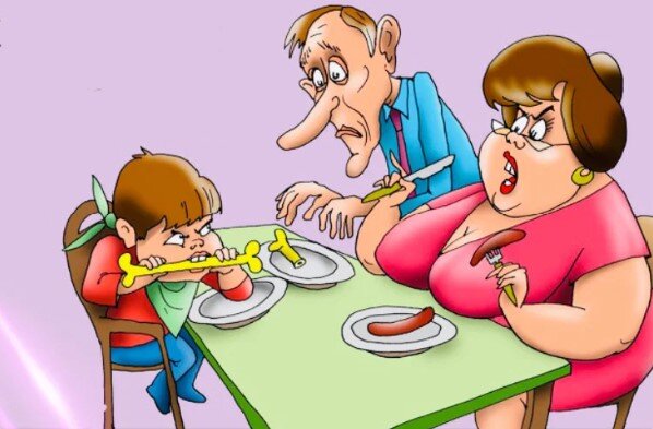Были дома Вовочка, его отец и мать. Сидели все, обедали. И вот отец захотел поприставать к своей супруге. И так и сяк к ней, она все отнекивается. Сама хочет продолжить ухаживания, но сын рядом, нельзя так. Тогда папа позвал сына и предложил игру: