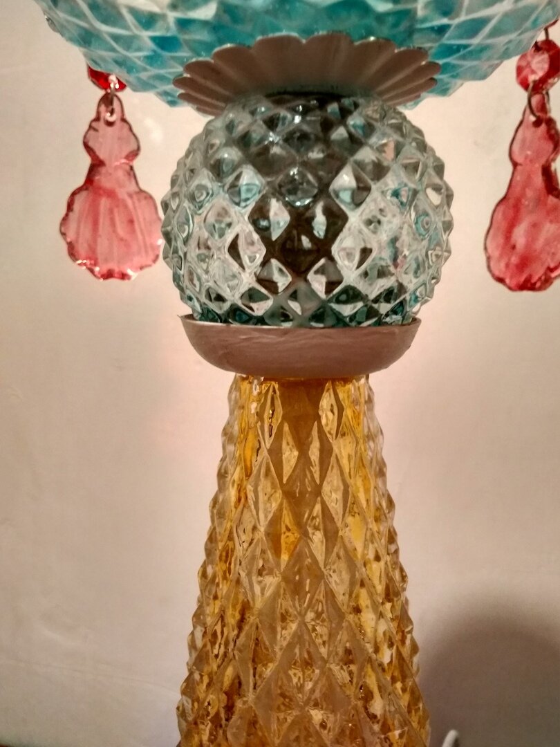 Дочка очень хотела себе в комнату разноцветную стеклянную люстру, а потратить 7-8 тысяч тогда я не была готова на освещение. В итоге мы договорились, что ищем на авито старую люстру и перекрашиваем на свой вкус.