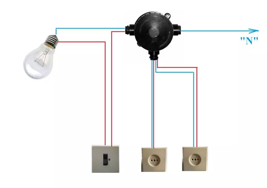 Вскрыл розетки и выключатель, думал может фазу каким-то образом туда завели… Опять же нет! В каждом подрозетнике только по два провода…