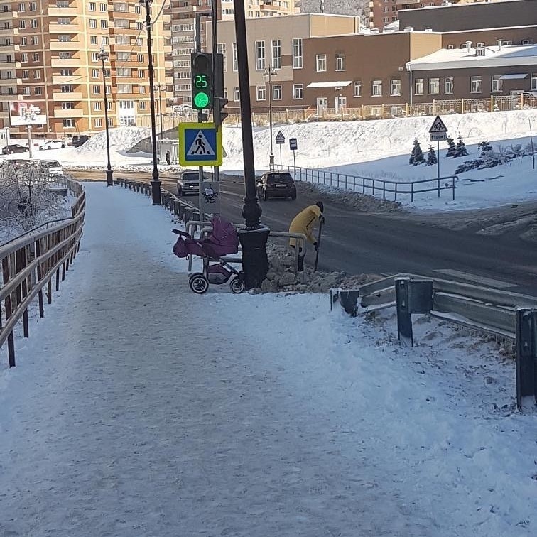 Убирающая снег девушка с коляской вызвала восторг в сети