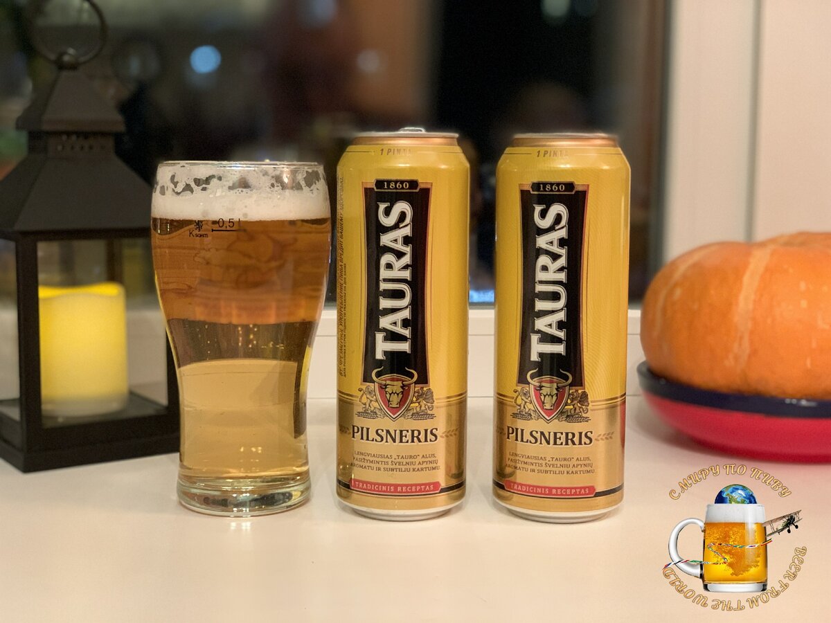 Пиво "Таурас Пилснерис" ("Tauras Pilsneris") светлое фильтрованное пастеризованное. (алк.4,6%, пл.10,5%). Объём: 0,568 л. В составе: вода подготовленная, солод пивоваренный ячменный, ячмень, хмель и хмелепродукты. Изготовитель: ЮАБ "Калнапилио-Тауро Групе" Литва.