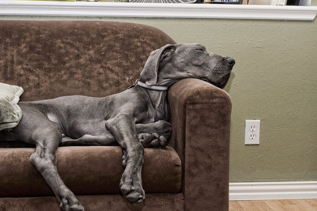 И даже несмотря на его огромный внешний вид, внутри немецкий дог очень добрый, спокойный, уравновешенный и покладистый питомец.