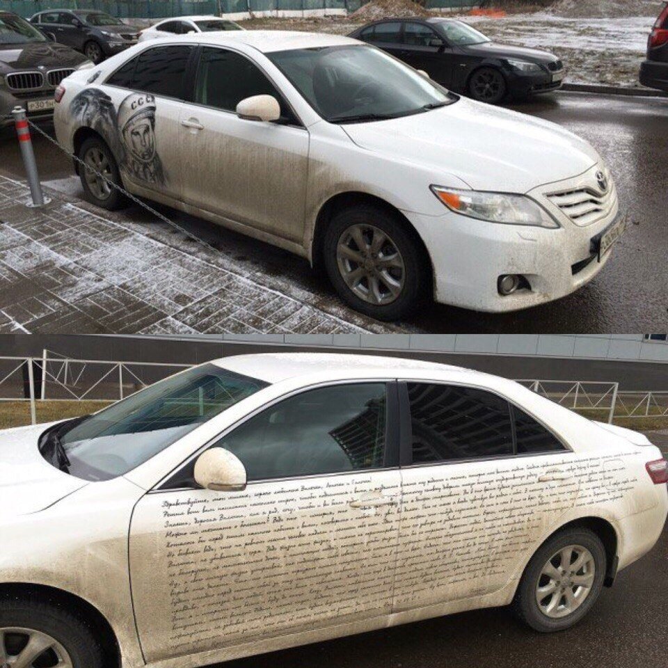 "Сегодня ездил по делам и увидел на парковке авто с аэрографией Гагарина. Понравилось, ну и сфоткал. Хотел было идти, но подумал, а может и на другой стороне что-нибудь есть. И просто обалдел, когда увидел что там!