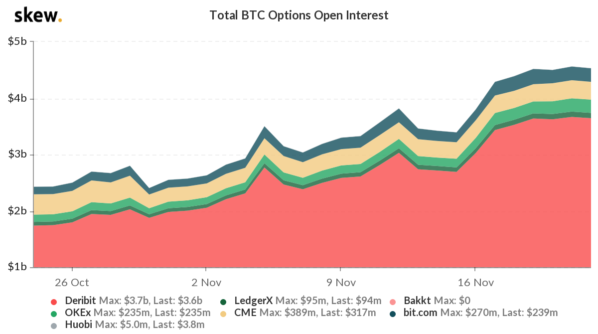 Совокупный открытый интерес (ОИ) по биткоин-опционам вырос за неделю на 25% — с $3,4 млрд до $4,53 млрд.