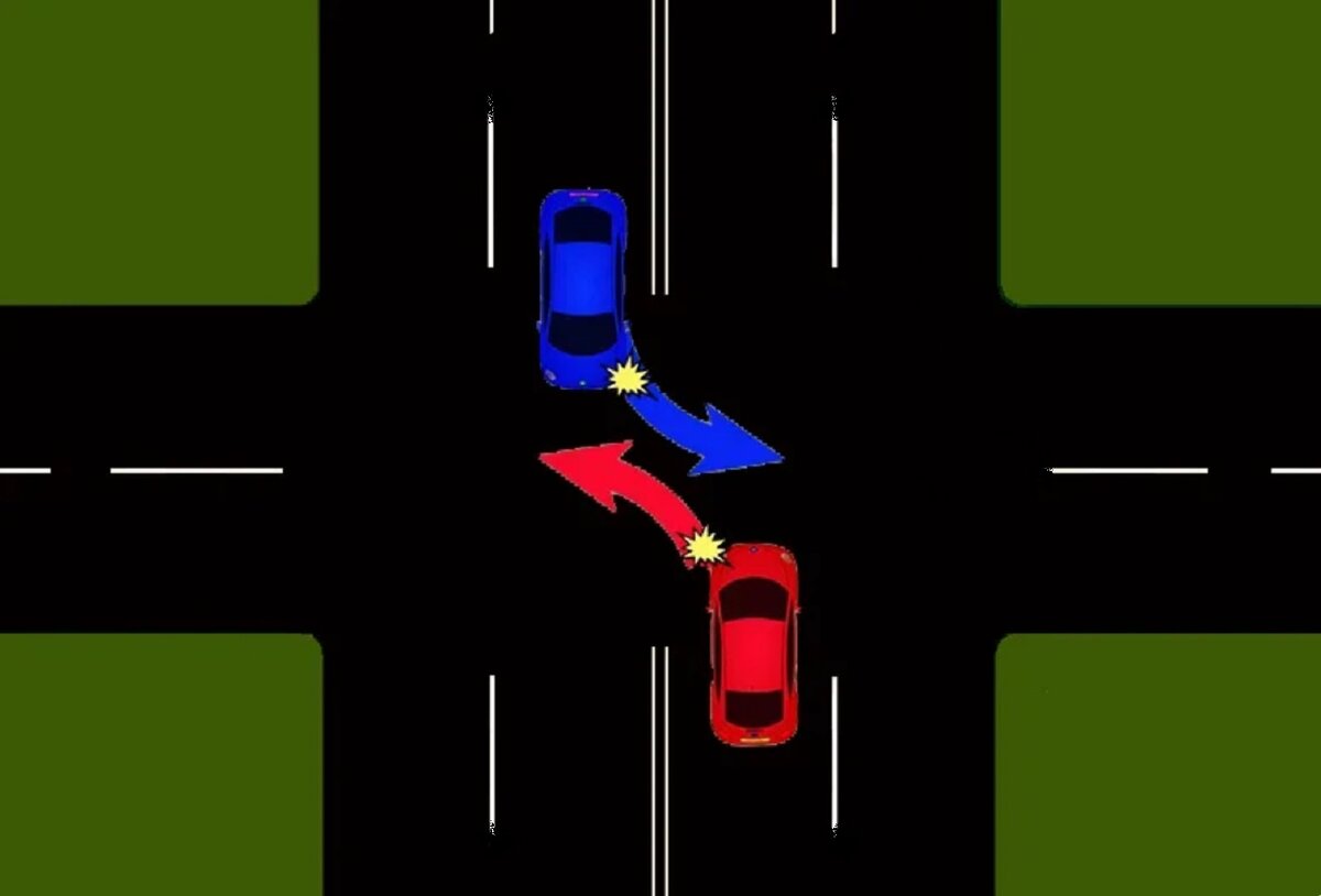Таким образом поворот происходит сразу с двух противоположных полос движения. Именно в этот момент происходит совершение роковой ошибки, которая может повлечь за собой аварийную ситуацию или же саму аварию.