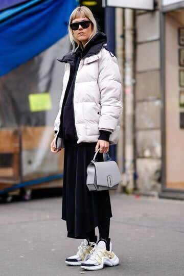 Классно застилизовать пуховик с платьем в холодное время года почти так же сложно, как решить проблему джинсов и голых лодыжек. Но у гостий Недель моды есть несколько приемов, которые позволяют не замерзать и выглядеть при этом модно.
