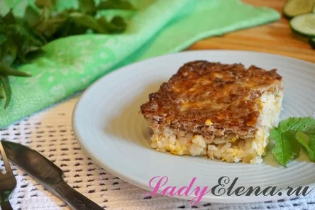 11. Спустя время запеканка из фарша и риса готова. Подать запеканку к столу.