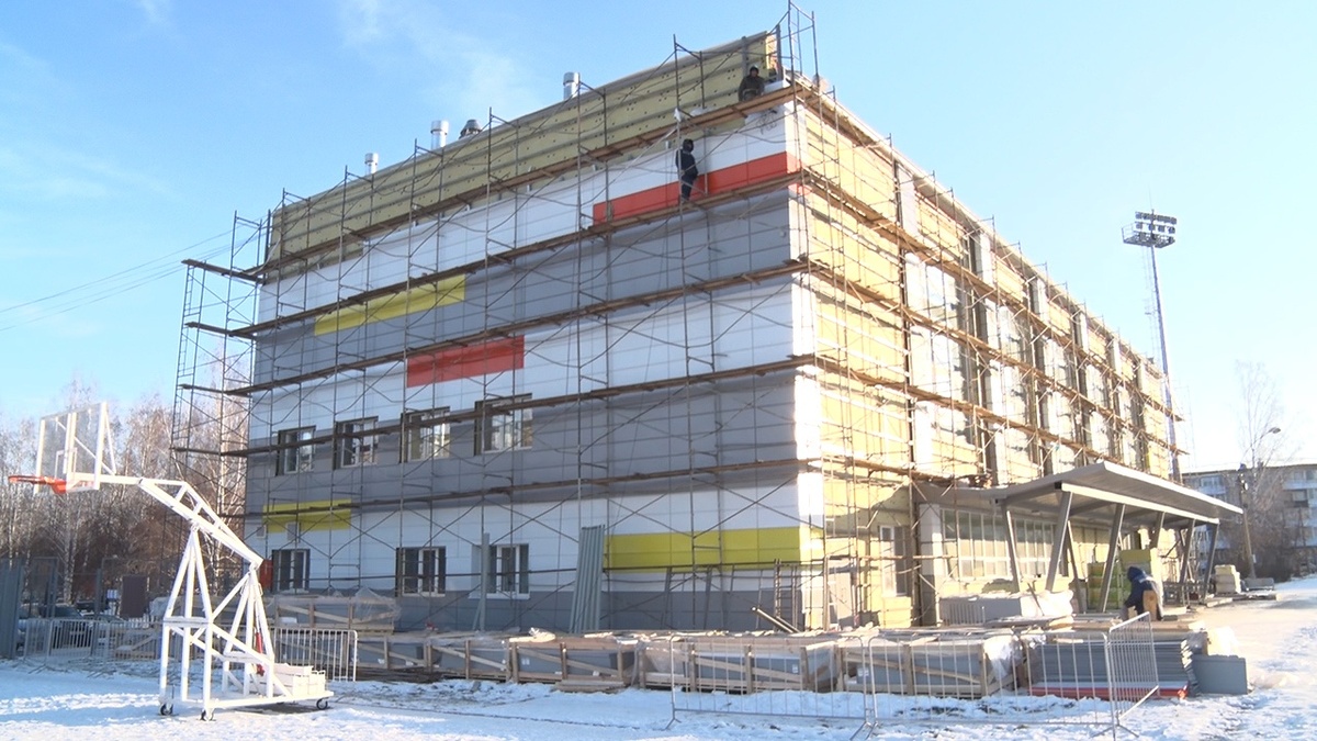 В эти дни строительные бригады, работающие на фасаде здания, приступили к монтажу панелей внешней облицовки. Таким образом, стены спортпавильона будут не только утеплены, но и приобретут новый яркий внешний вид.