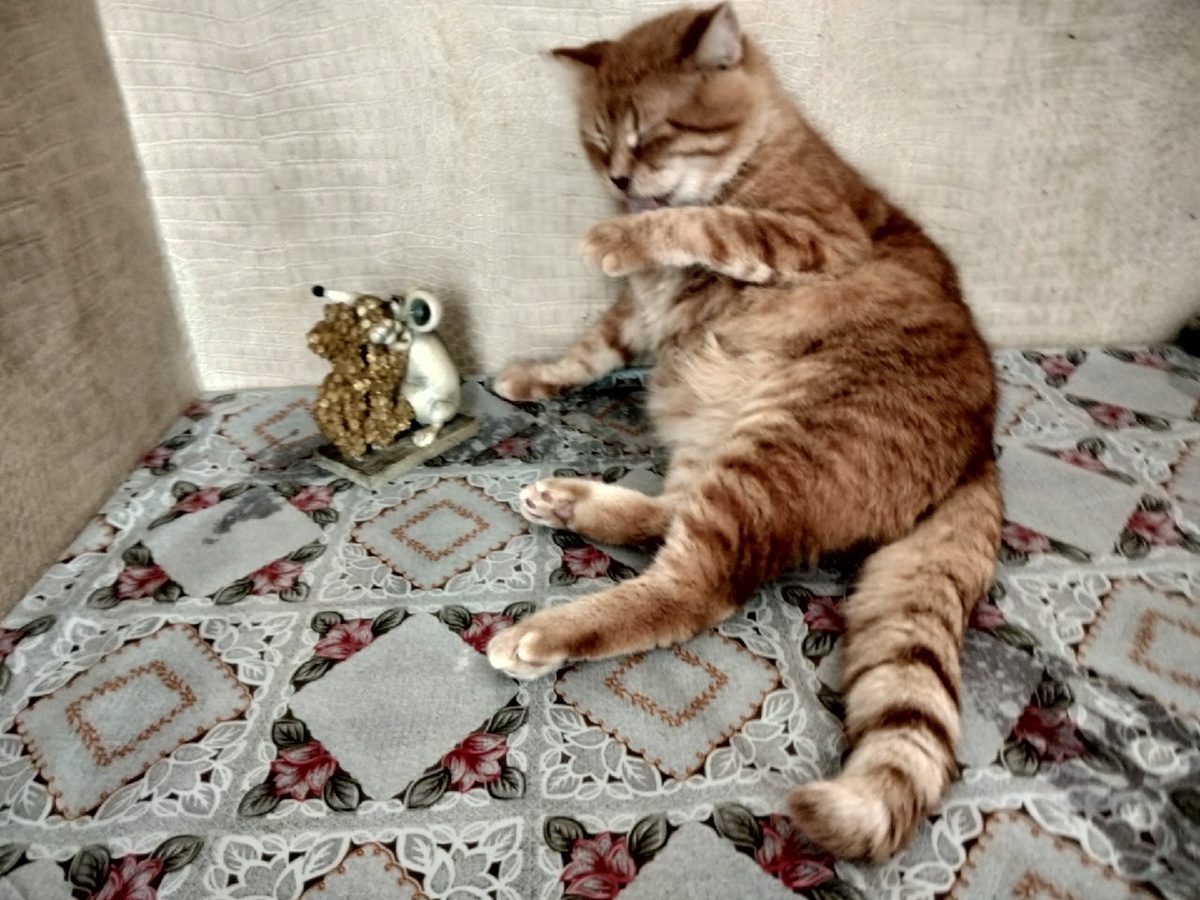 - Таити-Таити... - нас и здесь не плохо кормят! - наверное именно так, как персонаж любимого мультфильма сейчас и говорит его величество кот Персик, разложив свои шикарные плюшевые меха и вывалив уже округлившиеся формы!) Любовь и забота делают чудеса: каким стал кот Персик!)