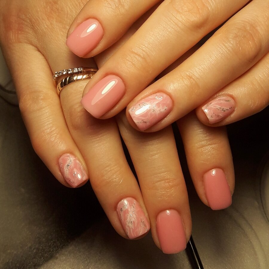 1. Нюд с легкими размывами на мокрой базе, в завершение данного дизайна добавляем немного блеска ( жидкая фольга).