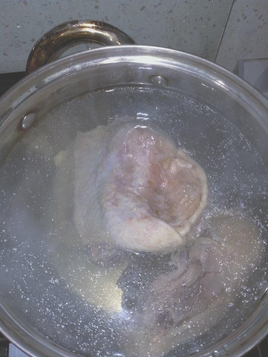 Для начала ставим варить курицу.
