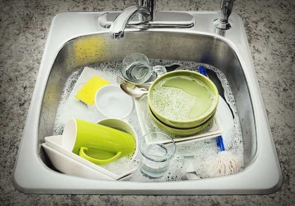 1. Замачивать посуду в раковине