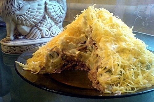 6-й слой твёрдый сыр, тру на мелкую тёрку. Готово!