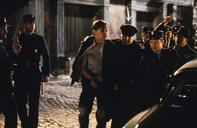 В этом блокбастере Спилберга, рассказывающем о похождениях мошенника Фрэнка Абигнейла, есть забавный момент. Фрэнка в исполнении Леонардо ДиКаприо по сюжету ловят во Франции, а арестовывает его переодетый во французского жандарма настоящий Фрэнк Абигнейл, по чьей реальной истории снят этот фильм.
