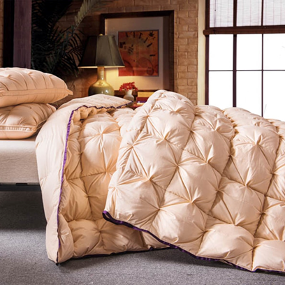 Еще дороже, ну, и повыше качество. Предлагается в трех размерах: 135*200 см, 180*200 и 200*220 см. Вес наполнителя – 750 г, 1000 г, 1250 г. Состав: 90% - пух серой утки, 10% - перо серой утки (ну, вроде бы серая лучше, чем белая). Класс наполнителя - 550. Чехлы – хлопок, сшито камерами. Цена: 8500 рублей , 11500 рублей , 15000 рублей. Класс выше, цена – больше.