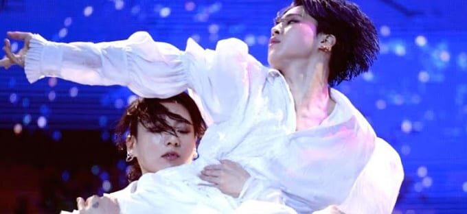 Для танца Чонгук и Чимин были одеты во все белоснежное, а другие танцоры были одеты в темное. 2 участника BTS продемонстрировали балетные способности, совершив взлет в середине концерта, когда Чонгук поднял Чимина в воздух и развернул его под музыку. Поклонники выдвинули хэштег #Jikook в Twitter, назвав данный момент искусством. Танцевальный дуэт данных двоих сразил сердца посетителей, ниже вы сможете взглянуть абсолютное видео представления.