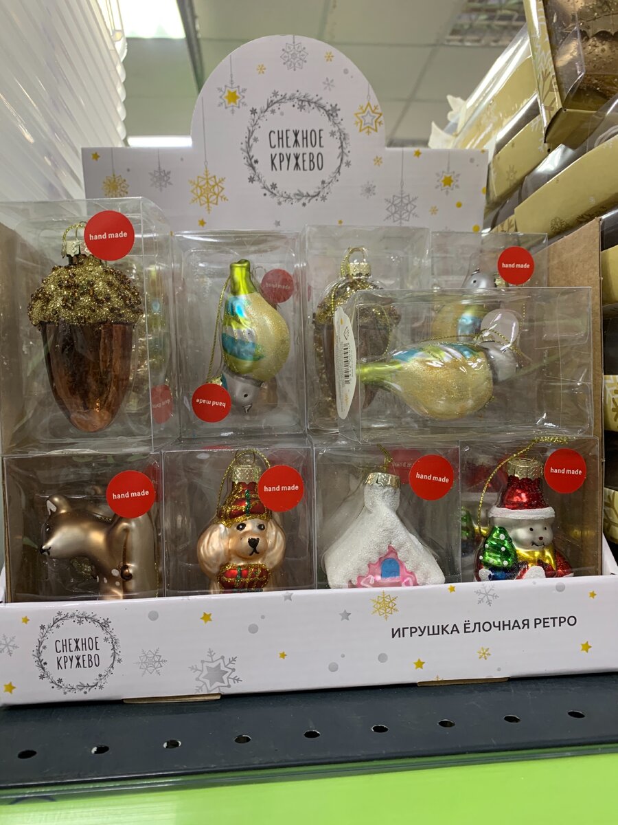 Очень симпатичные стеклянные ретро-игрушки от марки Снежное кружево (в этом году товаров именно этого производителя очень много, и все достойны внимания 👍).