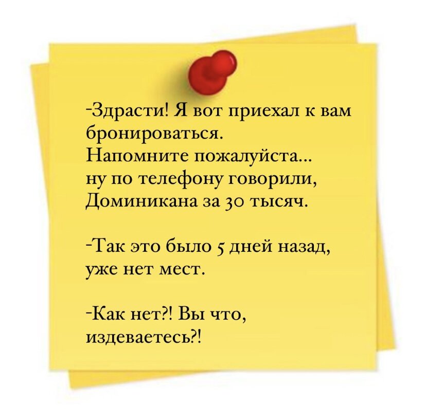 Туристка попросила скинуть ей самые дешевые варианты отдыха. Через час приходит от нее ответ: "Выбрала отель ФОРТУНА 4*, отзывы почитала, пишут, что хороший отель. Бронируйте!" Пришлось объяснять, что ФОРТУНА - это не отель, а такой тур, когда не знаешь, в какой отель тебя поселят, может повезет, а может - нет. Самое главное, отзывы же где-то нашла))